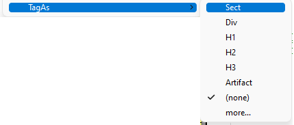 The TagAs option lets you select the PDF/UA TagAs options from a list of options.