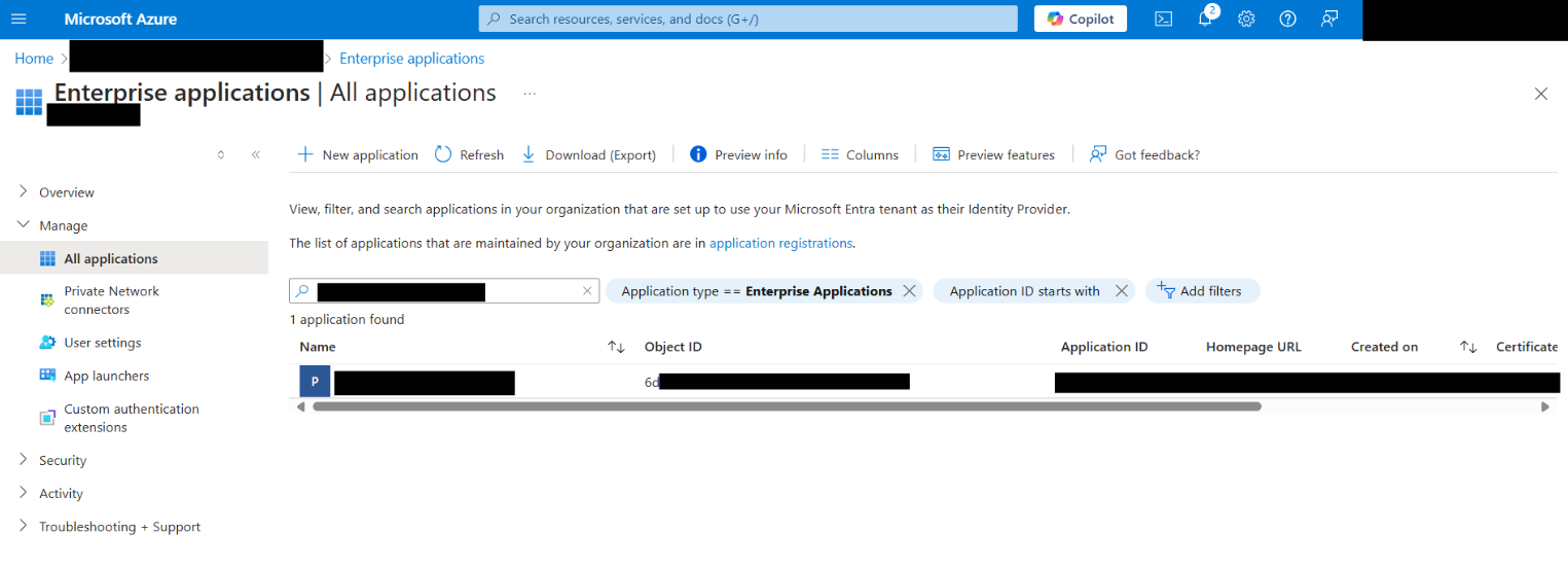 The <SERVICE_PRINCIPAL_ID> value is the same as the <OBJECT_ID> from the previous step and should be listed in the registered service principals.